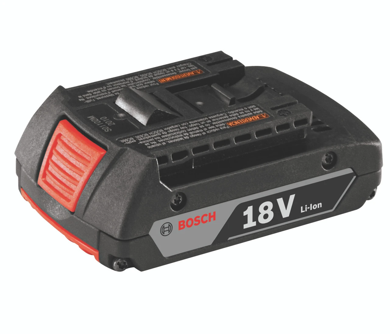 The new 2.0 Ah 18 V Bosch SlimPack battery offers more run time and 2x longer life with unique CoolPack Design technology. The advanced heat conductive housing keeps the battery cooler for long life. The compact size and lightweight make it perfect for professional work overhead. An integrated fuel gauge makes checking charge status quick and easy. And working in cold weather is no issue down to -4 degrees F. The BAT612 is compatible with all Bosch 18 V Lithium-Ion power tools, radios and more. FEATURES: Maximum run time – up to 65% more run time (compared to Bosch 1.5 Ah) Unique CoolPack Design – advanced heat conductive housing keeps battery cooler, lives up to 2x longer Integrated fuel gauge – for fast and easy charge status Cold weather operation – battery will work down to -4 degrees F Durable housing – survives 3 m drop Flexible Power System (FPS) – works with all Bosch 18 V Lithium-Ion power tools, radios and more SPECIFICATIONS: Battery Chemistry Lithium Ion Battery Voltage 18 Height 1.75″ Length 4.5″ Weight 0.75lb Width 3.0″ Includes (1) BAT612 18V Lithium-Ion 2.0 Ah SlimPack Battery