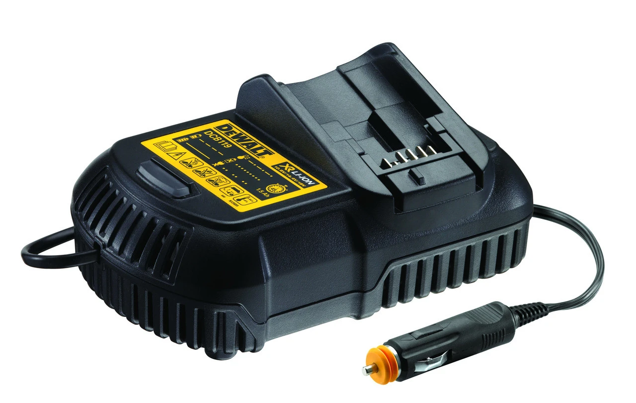 The DCB119 12V MAX – 20V MAX Lithium Ion Vehicle Battery Charger allows professionals to charge their battery on the way to the job to minimize down-time. Charges for less than an hour and automatically shuts off when charge is complete to protect vehicle battery. FEATURES: Charges all DEWALT 12V – 20V MAX Li-Ion batteries from a vehicle’s power outlet enabling batteries to be charged while driving to work or on a job site Automatic shut-off protects excessive discharge of vehicle’s battery Quickly charges batteries to minimize down time: DCB120 (12V MAX, 1.3 Ah) charges in 40 minutes; DCB201 (20V MAX, 1.5 Ah) charges in 45 minutes; DCB200 (20V MAX, 3.0 Ah) charges in 90 minutes Diagnostics with LED indicator communicates battery charge status: charged, charging, power line problem, replace pack, and battery too hot or too cold Â