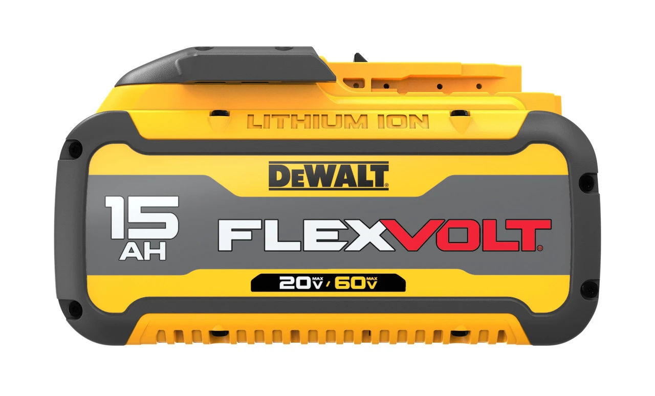 The FLEXVOLT 20V/60V MAX* 15.0 Ah battery provides the highest capacity of any battery on the DEWALT cordless system. It changes voltage when going from 20V MAX* to 60V MAX* tools and is compatible with a variety of 20V MAX* tools and chargers. In 20V MAX* tools it will provide extended runtime. In 60V MAX* it will deliver cordless 60V MAX* power. FEATURES 15.0 Ah capacity for maximum runtime Compatible with 20V MAX*, 60V MAX* and 120V MAX* tools and all 20V MAX* chargers 3-LED fuel gauge – state of charge indicator Operates in outside temperatures down to 0° F SPECIFICATIONS CAPACITY: 15 AH POWER SOURCE: LITHIUM ION POWER TOOL TYPE: CORDLESS SYSTEM: 20V MAX* WEIGHT: 4.5 LBS INCLUDES FLEXVOLT 20V/60V MAX* 15.0 Ah Battery WARRANTY & SERVICE INFORMATION
