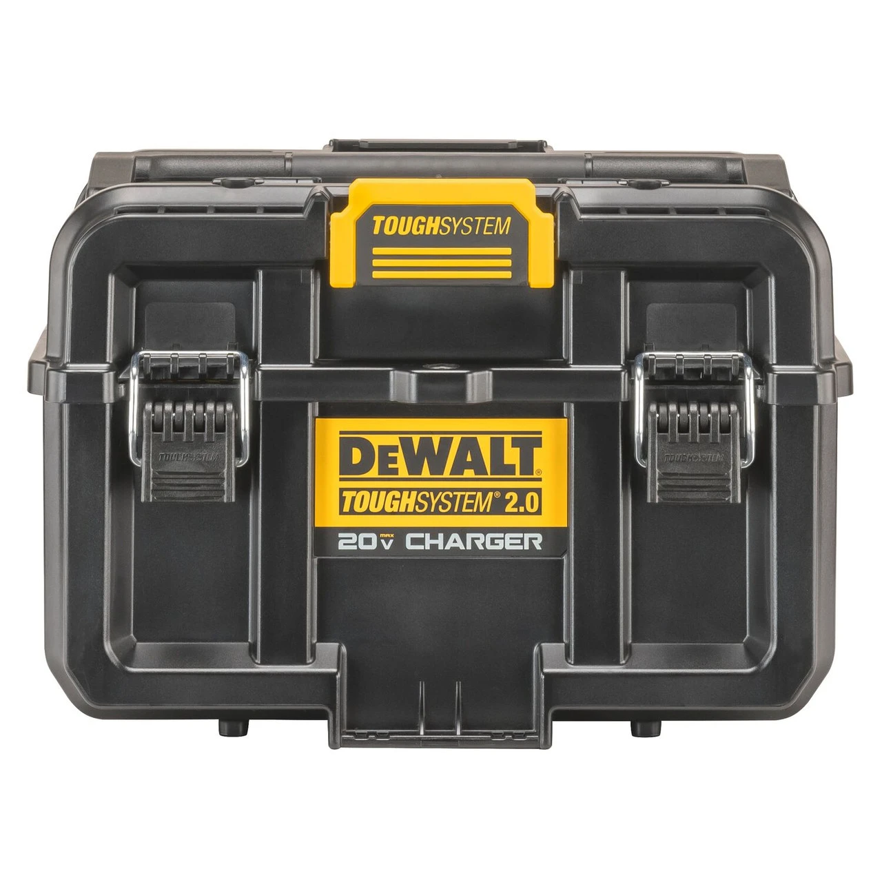 DEWALT TOUGHSYSTEM 2.0 20V Dual Port Charger. Dual Simultaneous-Charging: 20V max batteries including Flexvolt. Optimal storage space for batteries & tools. 2X USB charging ports (internal + external). IP55 Protection against dust & water. Compatible with TOUGHSYSTEM 2.0 modules. Convenient carrying with coated handle. Batteries sold separately. Features Dual Simultaneous-Charging: 20V max batteries including Flexvolt Optimal storage space for batteries & tools 2X USB charging ports (internal + external) IP55 Protection against dust & water Compatible with TOUGHSYSTEM 2.0 modules Convenient carrying with coated handle