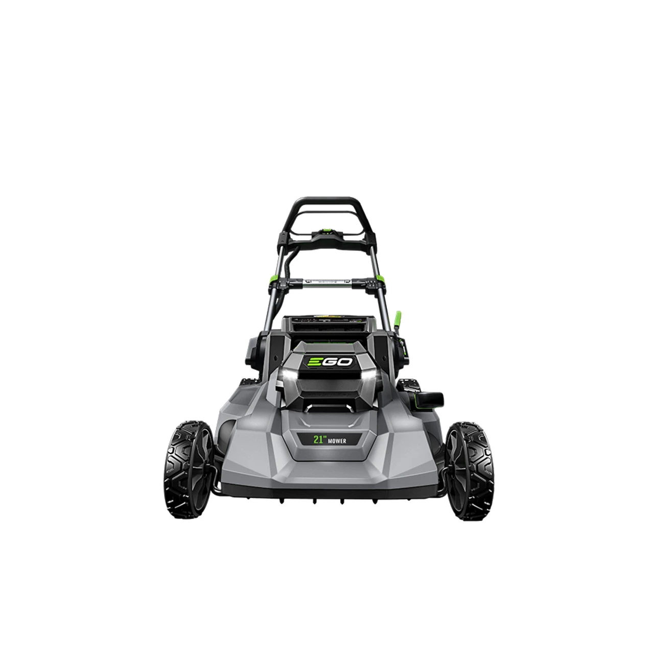 The EGO POWER+ 21” Mower delivers 6.0 foot-pounds of torque—power that exceeds gas without the noise, fuss, or fumes. The high-efficiency brushless motor delivers long runtimes, low vibration, and lifelong durability. This electric lawn mower delivers up to 55 minutes of run time on a single charge with the included 56V ARC Lithium battery. The cordless lawn mower delivers precision cutting with its advanced mulching blade and seven cutting height positions from 1.25 to 4 inches, adjustable with one hand. Three-in-one functionality delivers your choice of mulching, side discharge, or bagging your grass clippings; an easy-access two-bushel grass collection bag is included. This push lawn mower includes bright LED lights for added visibility when mowing at dawn or dusk, and it folds flat for compact storage between cuts. Experience Power Beyond Belief with the EGO POWER+ 21” Lawn Mower. Specifications Delivers 6.0 ft-lbs of cutting torque for performance that exceeds gas lawn mowers Up to 55 minutes run time on a single charge with the 56V 6.0Ah ARC Lithium battery High-efficiency brushless motor delivers long runtimes, low vibration, and lifelong durability 7-position cutting height adjustments: 1.25 to 4 inches 3-in-1 function: mulching, bagging, side discharge Quick and easy push-button start 21-inch deck Bright LED headlights Adjustable handle height IPX4-rated weather-resistant construction Folds for compact storage Easy-access two-bushel grass collection bag 80-minute charging time with the 6.0Ah ARC Lithium battery and POWER+ 320W charger Compatible with all EGO 56V ARC Lithium batteries 5-year tool warranty, 3-year battery warranty INCLUDES (1) 21″ Brushless Push Mower [LM2110] (1) 56V 6Ah Battery [BA3360T] (1) 56V 320W Charger [CH3200]