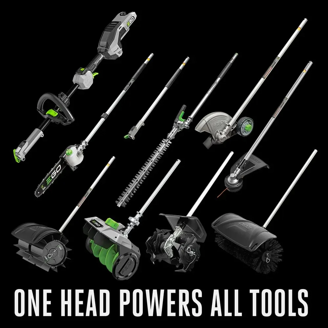 The EGO POWER+ Power Head is the core of your POWER+ Multi-Head System and works with the full assortment of Multi-Head System Attachments. Its high-efficiency brushless motor delivers long runtimes, low vibrations, and an extended tool life. The Power Head features an extremely durable carbon fiber shaft backed by a lifetime warranty. Its digital two-speed selector and indicator allows you to toggle between high and low speeds while the variable speed trigger delivers ultimate control. Take advantage of one, or the full assortment of EGO POWER+ Multi-Head attachments: Pole Saw Attachment (PSA1000), Edger Attachment (EA0800), String Trimmer Attachment (STA1500), Hedge Trimmer Attachment (HTA200), Rubber Broom Attachment (RBA2100), Bristle Brush Attachment (BBA2100), Cultivator Attachment (CTA9500), Snow Shovel Attachment (SSA1200), and Extension Pole (EP7500). The EGO POWER+ Power Head is compatible with all EGO 56V ARC Lithium batteries (available separately) to deliver Power Beyond Belief. Specifications Pairs with all POWER+ Multi-Head System attachments to make quick work of any yard project High-efficiency brushless motor delivers long runtimes, low vibrations, and extended tool life Extremely durable carbon fiber shaft, backed by a lifetime warranty IPX4-rated weather-resistant construction Digital two-speed selector and indicator Variable speed trigger with lock-off lever for added safety Includes quick-release adjustable handle Includes shoulder strap Compatible with all EGO 56V ARC Lithium batteries (available separately) 5-year tool warranty