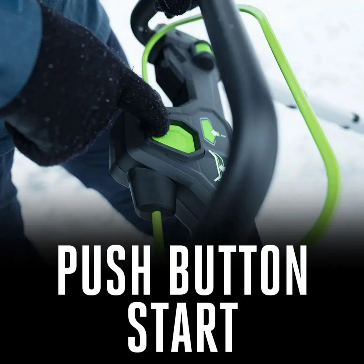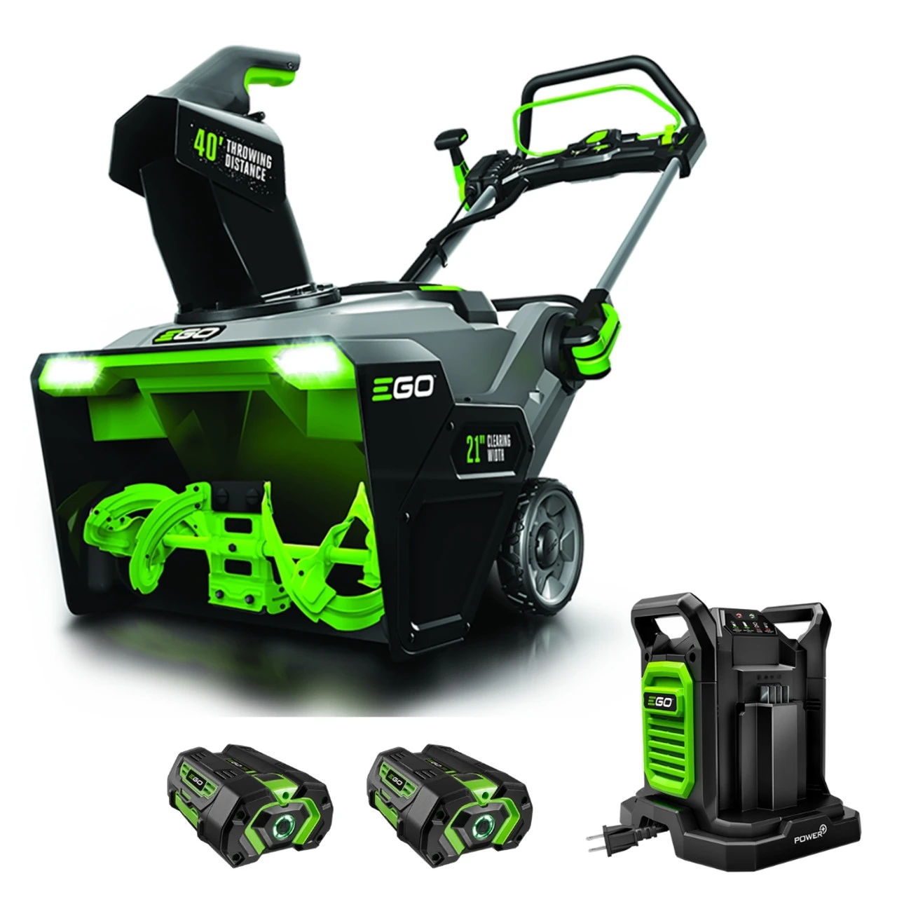 The EGO POWER+ Snow Blower delivers the power and performance of gas-powered snow blowers without the noise, fuss, and fumes. Featuring Peak Power technology, this cordless snow blower combines the power of any two EGO 56V ARC Lithium batteries for the performance to clear even the heaviest, wettest snow with a throwing distance up to 40 feet. Built with a high-efficiency brushless motor and steel auger, the EGO POWER+ cordless electric snow blower handles what the city snowplow leaves behind with ease, cutting through ice and snow 50% faster (compared to SNT2102). Experience Power Beyond Belief with the EGO POWER+ Snow Blower and the entire EGO POWER+ lineup. Specifications Peak Power technology combines the power of two EGO POWER+ 56V ARC Lithium batteries Throws snow up to 40 feet Clears a 12-car driveway with 8 inches of snow on a single charge when used with the two recommended 5.0Ah ARC Lithium batteries Steel auger cuts through ice and snow 50% faster (compared to SNT2102) High-efficiency brushless motor 21 inch clearing width Variable auger speed control system adjusts snow throwing distance Weather-resistant heavy-duty steel and composite construction to handle challenging conditions Two bright LED headlights for increased visibility for nighttime snow removal Convenient, handle-mounted chute adjustment Quick-fold handle for compact storage 5-year tool warranty