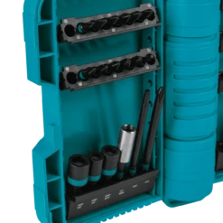 TORQUE DRIVE socket design: Contacts fasteners on the sides instead of the corners Reduces fastener rounding Allows up to 20% more torque to be applied to fasteners Other features: Chamfered edges for easier socket placement on fasteners Extra long deep sockets maximize accessibility Forged from quality Chrome Vanadium (CrV) steel Meets or exceeds U.S. Federal GGG-W-641E, Canadian Government CDA39-GP-12b and ANSI specifications WARNING: Do not use chrome sockets on electric or air-powered impact wrenches Comes with a plastic blow mold storage case Drive: 3/8″ Set includes: Standard length 6-Point S.A.E. sockets: 3/8″, 7/16″, 1/2″, 9/16″, 5/8″, 11/16″ & 3/4″ Deep 6-point S.A.E. sockets: 3/8″, 7/16″, 1/2″, 9/16″, 5/8″, 11/16″, 3/4″ & 13/16″ Standard length 6-Point Metric sockets: 8, 9, 10, 11, 12, 13, 14, 15, 16, 17, 18 & 19 Deep 6-point Metric sockets: 8, 9, 10, 11, 12, 13, 14, 15, 16, 17, 18 & 19 mm 671928 – 72-Tooth high torque ratchet 671905 – 3″ Extension 671907 – 6″ Extension 671902 – 8″ Flex handle 671910 – 1-7/8″ Universal joint Plastic blow mold storage case with removable lid