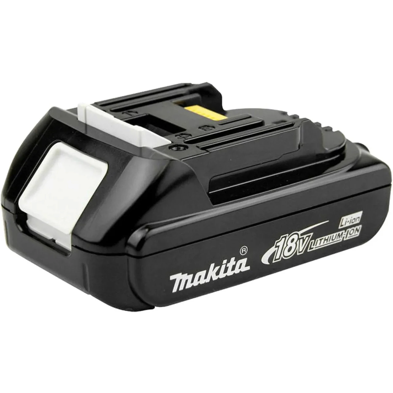 18V Li-Ion Battery Platform from Makita NEW Battery Protection System provides Over-Discharge, Temperature and Current Protection for enhanced performance, battery cycle life and overall battery life (when used with STAR marked tool) Li-Ion Batteries offer extended run time versus Ni-Cad and Ni-MH batteries Li-Ion Batteries offer more cycles over the life of the battery versus Ni-Cad and Ni-MH batteries Optimum Charging System utilizes 3 Active Controls (Current, Voltage & Temperature) to maximize battery life Built-In Memory Chip communicates with Charger CPU to optimize the charging process based on the unique conditions of each batteryLi-Ion Batteries offer extended run time versus Ni-Cad and Ni-MH batteries Specifications: Model No BL1815N Cell Type Lithium-Ion (Li-Ion) Capacity 1.5 Ah Style Slide-On Charging Time 22 minutes with DC18RC Rapid Charger Â