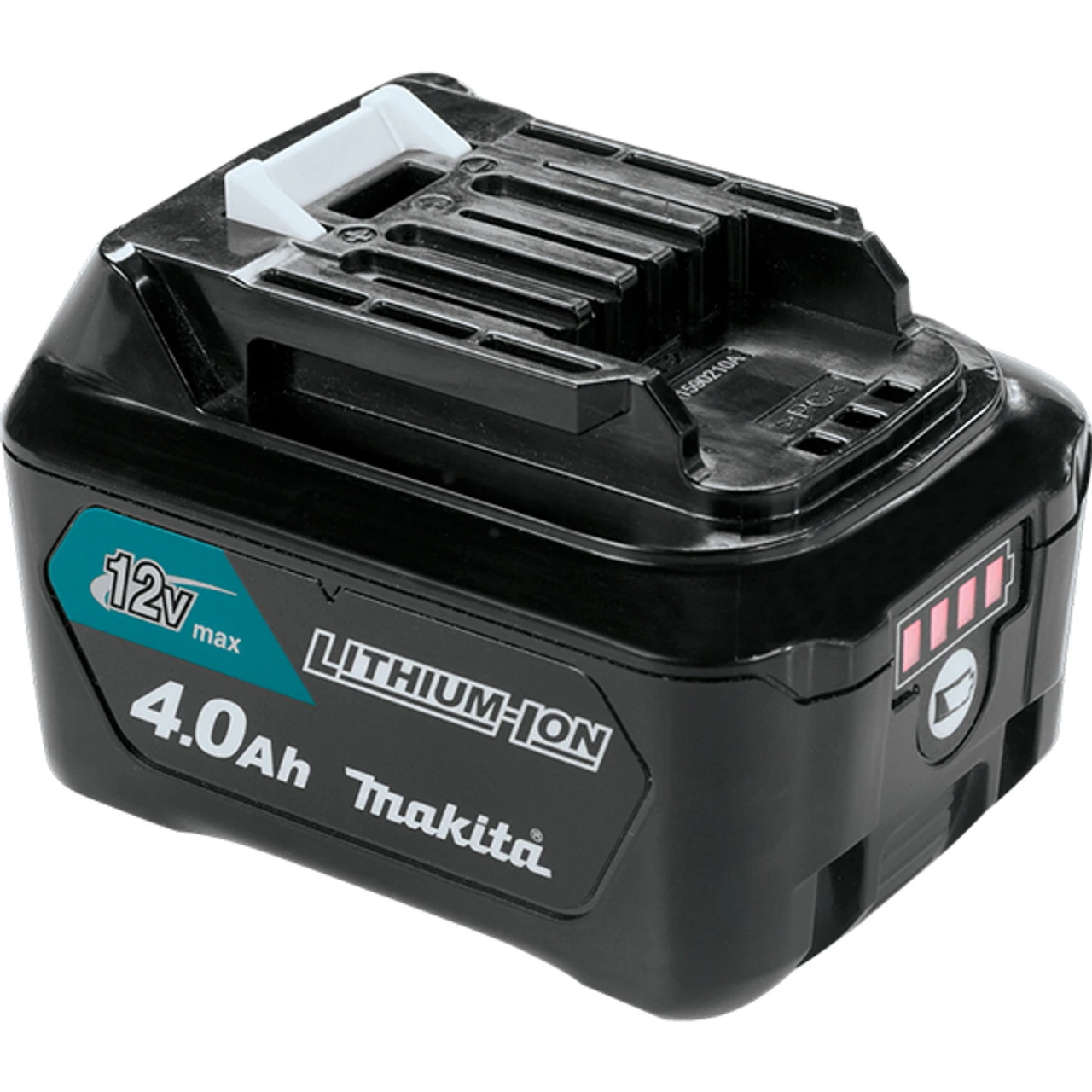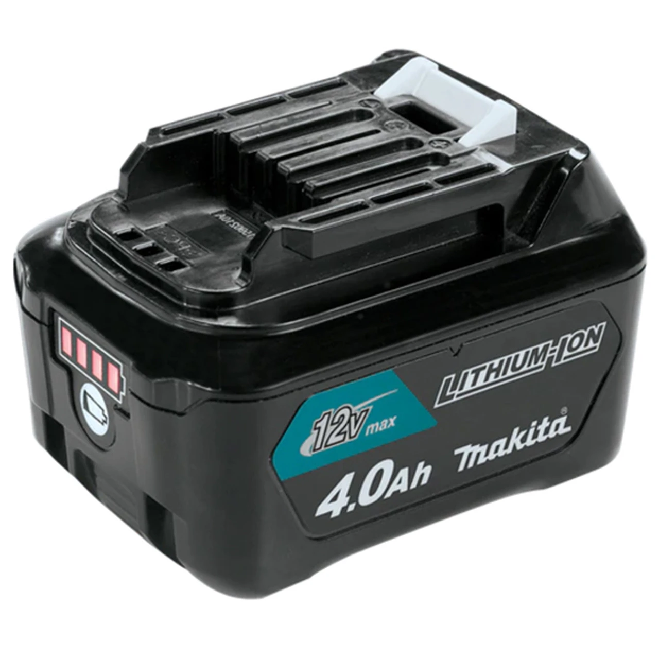 The 12V max CXT Lithium-Ion 4.0Ah Battery combines efficient performance with the superior balance and ergonomics of a slide-style battery and the convenience of an on-board L.E.D. battery charge level indicator. The 12V max CXT 4.0Ah battery (and 2.0Ah battery, sold separately) are at the heart of the expanding Makita 12V max CXT tool series, combining performance with superior ergonomics in a compact size. Makita 12V max CXT Lithium-Ion batteries can be charged on the efficient Makita 12V max CXT Lithium-Ion Charger (DC10WD). RUN TIME : Lithium-Ion battery delivers longer run time and lower self-discharge VERSATILITY : Part of the expanding 12V max CXT tool series, combining performance with superior ergonomics DESIGN : Features an integrated L.E.D. battery charge level indicator COMPATIBILITY : Use only with Makita chargers DC10WD and DC10SB FEATURES: Lithium-Ion battery delivers longer run time and lower self-discharge Features an integrated L.E.D. battery charge level indicator Compact design for less weight Part of the expanding 12V max CXT tool series, combining performance with superior ergonomics in a compact size Use only with Makita chargers DC10WD and DC10SB Not compatible with 12V max pod-style tools or chargers 3-year limited warranty Only use genuine Makita chargers INCLUDES : Includes 12V max CXT Lithium-Ion 4.0Ah Batter