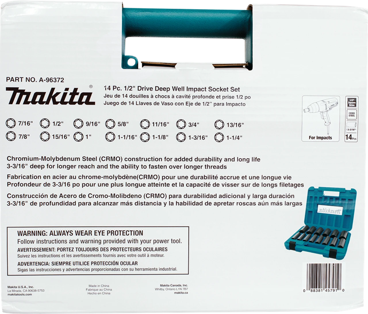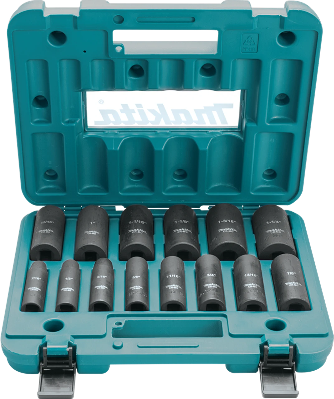 Be the first to review “Makita MAK-A-96372 14-Piece 1/2″ Drive Deep Well SAE Impact Socket Set” Cancel reply