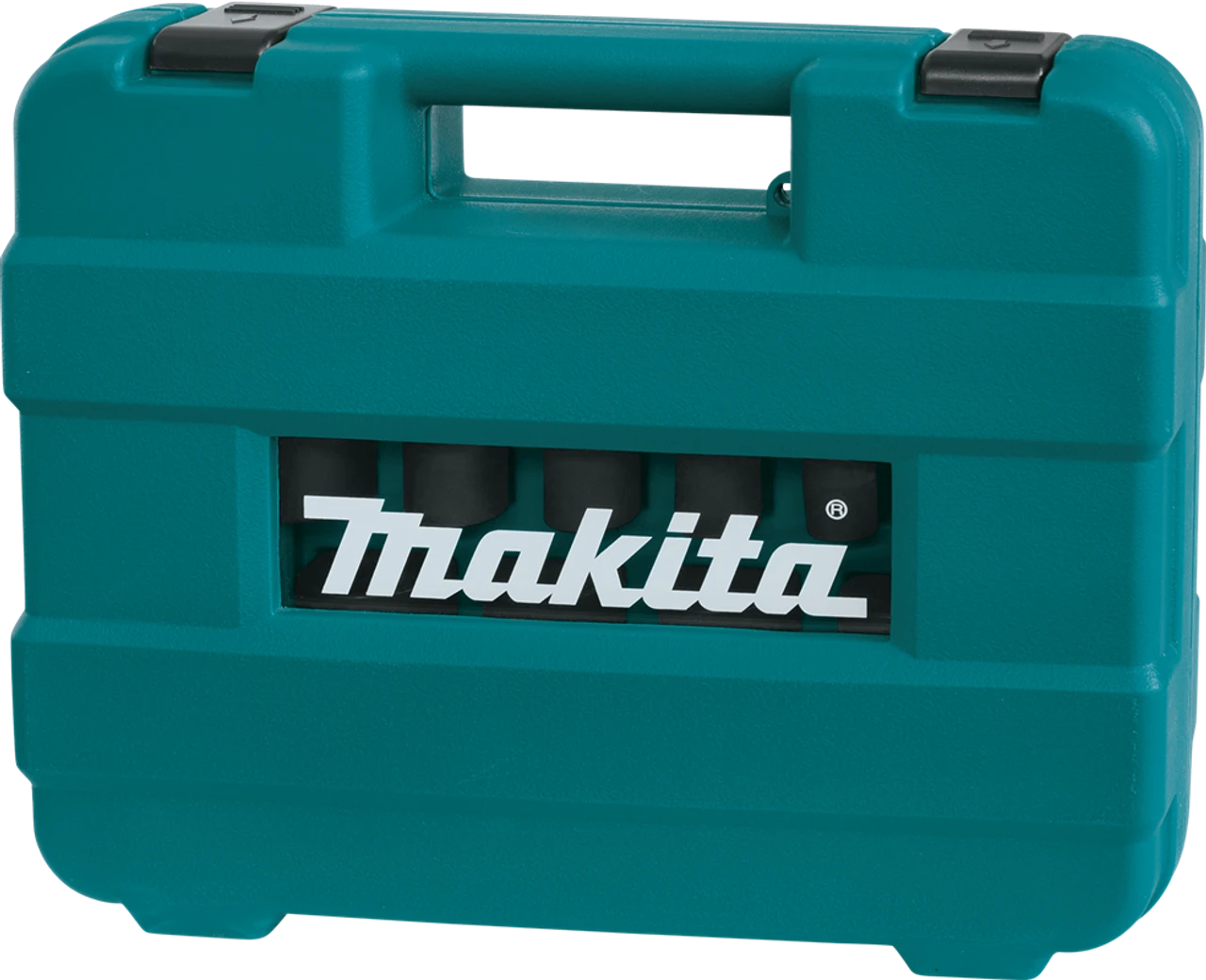 The Makita Deep Well Impact Sockets are the perfect accessory for a high torque impact wrench when taking on demanding applications like driving large lags through support beams, setting anchors, and removing stuck weather-rusted nuts. Makita Deep Well Impact Sockets are constructed with Chromium-Molybdenum Steel (CR-MO) and black oxide coated for longer life. The sockets have a 3-3/16” length for longer reach and the ability to fasten over longer threads. They are engineered for use with high-torque impact wrenches, and can also be used with impact drivers (adapter required, sold separately) and ratchets. Makita Deep Well Impact Sockets are ideal for tilt-up contractors, formers, framers, deck builders, and more. Features Chromium-Molybdenum Steel (CRMO) construction for added durability and long life 3-3/16″ deep for longer reach and the ability to fasten over longer threads Locking hole keeps the socket securely attached to the impact driver Laser etched for easy identification High strength 6-point drive sockets for Xtreme torque applications Black oxide coated to resist corrosion for longer socket life 1/2″ drive designed to handle the most demanding applications For fastening nuts onto bolts in high torque applications Sockets are ideal for use with impact drivers (with adapter), impact wrenches and ratchets