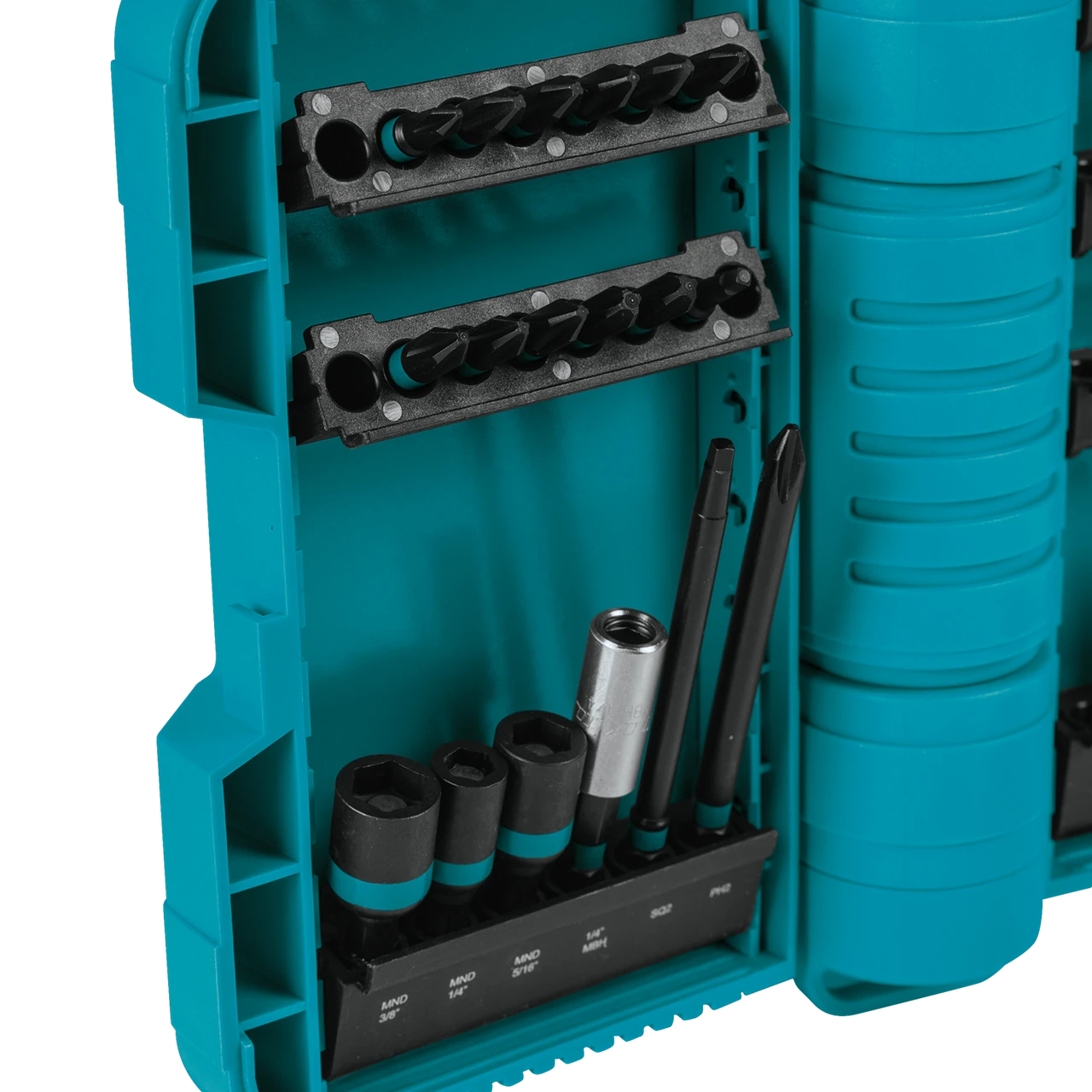 ImpactX is a line of impact-rated insert bits and fastening accessories built specifically for the demands of the professional contractor. Professionals require commercial duty bits and fastening accessories that can endure the force of high-volume screw driving applications with high torque impact drivers. Standard screwdriving bits are brittle and fit poorly into fasteners, and in applications with high torque impact drivers this losing combo quickly leads to broken bits. ImpactX hits back with improved fitment and increased performance with high torque impact drivers. Precision machined (not forged) tips ensure full contact fit, while performance-optimized and heat-treated S2 steel provides more flex and more durability than standard, brittle bits. FEATURES Precision machined tips with superior fitment for full contact fit and longer life Performance-optimized S2 steel construction for extended life Calibrated heat treating process for added durability Manganese Phosphate surface for advanced corrosion resistance Optimal geometry for an ideal fit and improved holding power Engineered to withstand the extreme power of high-torque impact drivers Ideal for driving screws in a variety of heavy duty applications including metal fastening, deck building, framing, and installing plywood subfloor For use with high torque impact drivers and driver-drills Xpand Storage System is removable and holds up to 50 extra 1″ insert bits Bit keepers rotate up to 90º for easy bit removal Retention loop for convenient storage and organization SPECIFICATIONS: PRECISION: Precision machined tips with superior fitment for full contact fit and longer life DURABILITY: Performance-optimized S2 steel construction for extended life DESIGN: Calibrated heat treating process for added durability CONVENIENCE: Manganese Phosphate surface for advanced corrosion resistance INCLUDES: (29) 1″ Insert Bits (5) 2″ Power Bits (2) 3-1/2″ Power Bits (1) Insert Bit Holders (3) 1-3/4″ Nut Drivers