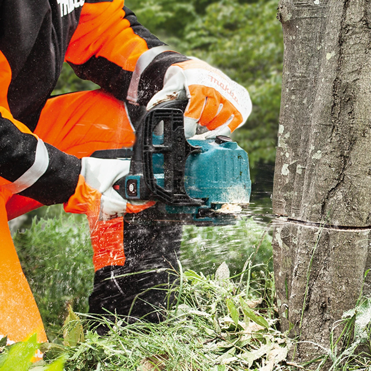 Fast, Variable Speed (0-4,880 Feet Per Minute). Power equivalent to a 32cc Gasoline Chainsaw. Designed with the professional arborist in mind that require a compact and powerful saw Variable speed control by trigger Electric chain brake Kickback brake Chain oil adjustment Oil Capacity Display window Brushless motor Compact & Lightweight. Captive nuts: prevent loss of nut when removing sprocket cover to replace guide bar or saw chain Hanging hook Main power switch with auto power-off function Specifications Product: 40V cordless chainsaw Manufacturer: Makita Model: UC005GM101 Battery capacities: 40V Max Li-ion Guide bar length: 16″ (400mm) Chain pitch / gauge: 3/8″ /0.043″ Chain speed: 0-4,880 FPM (0-1,490 m/min) Overall length: 10-1/2″ (266mm) Net weight: 9.8 lbs (4.4 kg) Includes (1) 40V Max (4.0Ah) Li-Ion Battery (BL4040) (1) Rapid Charger (DC40RA) (1) Battery Cover (412393-7) (1) 16″ Chain (191H03-4) (1) 16″ Guide Bar (191G17-7) (1) Chain Cover (419242-9) (1) Spike Bumper (346809-9) (1) Wrench 13-16 (782023-7) (1) Oil Supply (199897-3)