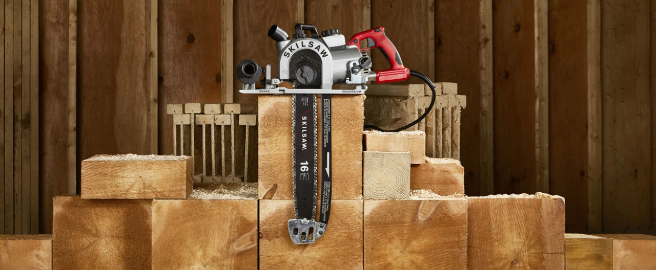 Make impossible cuts, possible. Backed by legendary Worm Drive gearing, the 16 In. SAWSQUATCH Carpentry Chainsaw combines power and durability for extraordinary productivity. Our 15 AMP Dual-Field motor keeps cool on the job, letting you tackle even the most difficult jobs. The full house chain provides precision, giving you cleaner, accurate cuts in a fraction of the time. Featuring magnesium built construction, this chainsaw delivers a lightweight design – allowing for maximum control and efficient handling. The impossible is possible with SKILSAW. Features Worm Drive delivers the relentless power and trusted durability needed to get the job done 14-1/4 in. depth of cut powers through deep material in one pass Self-lubricating, full-house chain with tool-less tensioning provides high quality cuts 15 AMP Dual-Field™ motor stays cooler, increasing longevity and work efficiency All magnesium construction for durability and reduced weight Includes SPT55 16 In. Worm Drive SAWSQUATCH Carpentry Chainsaw SKILSAW 56T Full House Chain 16 In. Guide Bar Auxiliary Handle Saw Stand Chain Sheath Specifications SIZEPOWERMATERIALSCUT DEPTH Blade Size: 16″ Amperage: 15 Gear Housing Material: Magnesium Depth of Cut: 14-1/4″ (362 mm) Cord Length: 8 ft. (2.44 mm) Maximum RPM No Load: 6300 Depth of Cut at 45 deg: 8-3/4″ (22 mm) Dimensions: Width 7″ (177.8 mm), Depth 28″ (711.2 mm), Height 25.5″ (647.7 mm) Depth of Cut at 60 deg: 5-1/2″ (138 mm) Weight: 18 lbs. BEVELSBLADEOTHER Bevel Capacity: 60° Blades Included: Yes Electric Motor Brake: Yes Blade Type: 56-Tooth Full House Chain: 3/8” low profile pitch Warranty: 180 day STAY TRUE Guarantee and 1 year limited warranty *With a new Skilsaw, it is noted in the manual to change the oil after the first 10 hours of use
