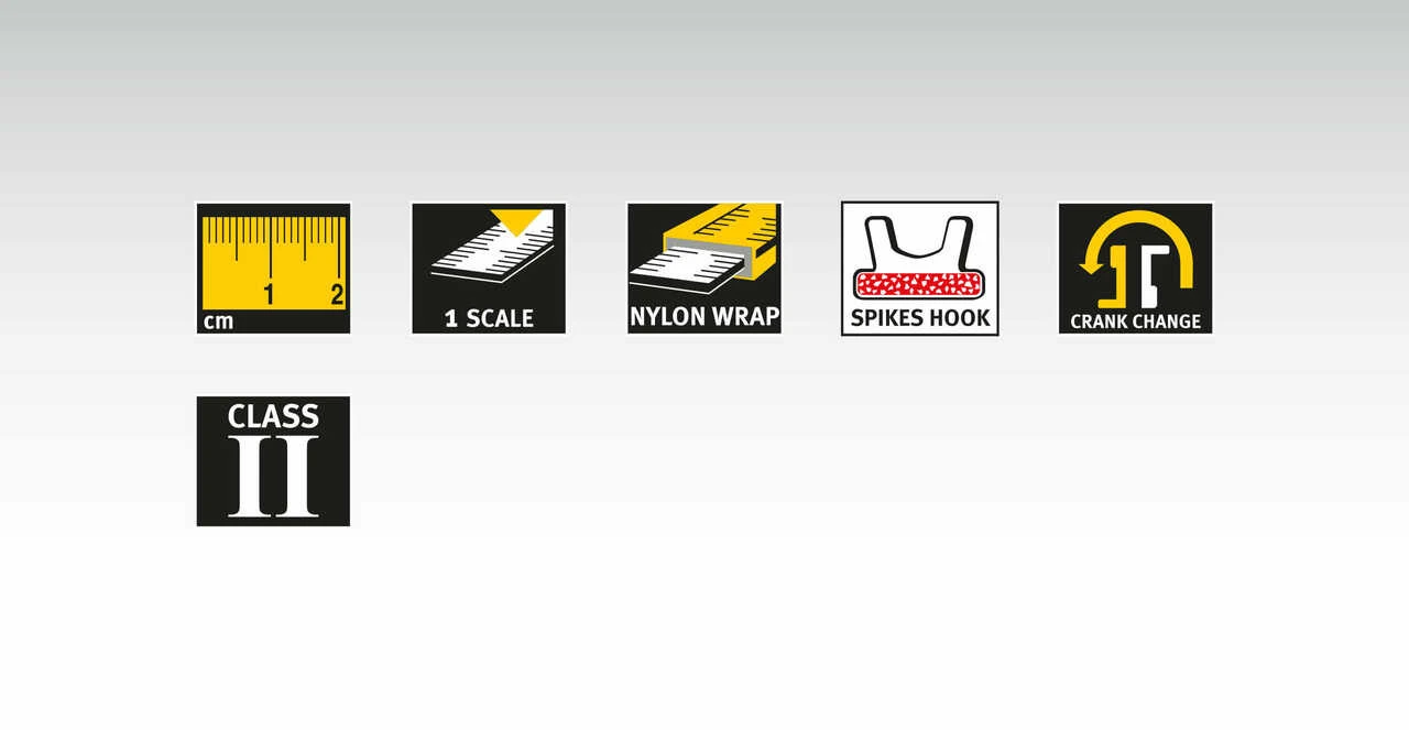 As an experienced professional, to measure long distances you need a tape measure that can withstand heavy-duty use every single day. The LBM 1000 STEEL combines several advantages: a shatterproof Y-reel, a rugged steel blade to protect the scale, and a universal hook for variable attachment options. Depending on the situation and application, you can choose between the fold-out metal hook with STABILA SPIKES coating, an integrated eyelet, or the large plastic ring with a nail groove. Suitable for use with either hand by simply switching the crank. Features: Rugged Y-reel tape measure with a metric scale made of PC/ABS plastic protects the blade against shock and impact. Ergonomic softgrip handle for comfortable handling. Extremely resistant STABILA NYLON-WRAP coating protects the blade against corrosion and wear. STABILA UNIVERSAL SPIKES HOOK: variable attachment options thanks to a fold-out SPIKES hook with an integrated eyelet and large, shatterproof plastic ring with a nail groove – for a secure hold when pulling the blade. STABILA SPIKES coating improves resistance to slipping on smooth surfaces and when measuring over long distances. The eyelet integrated into the hook enables quick release. STABILA CRANK CHANGE – crank easily switches from right-handed to left-handed operation. Clever plastic ring: easy to calculate the measured length – 2 cm between zero and the notch, 5 cm between zero and where the ring starts. The 0 is at the beginning of the blade clasp. Applications: Long tape measures are essential measuring tools for day-to-day use – for all professionals who do measurements over long distances.