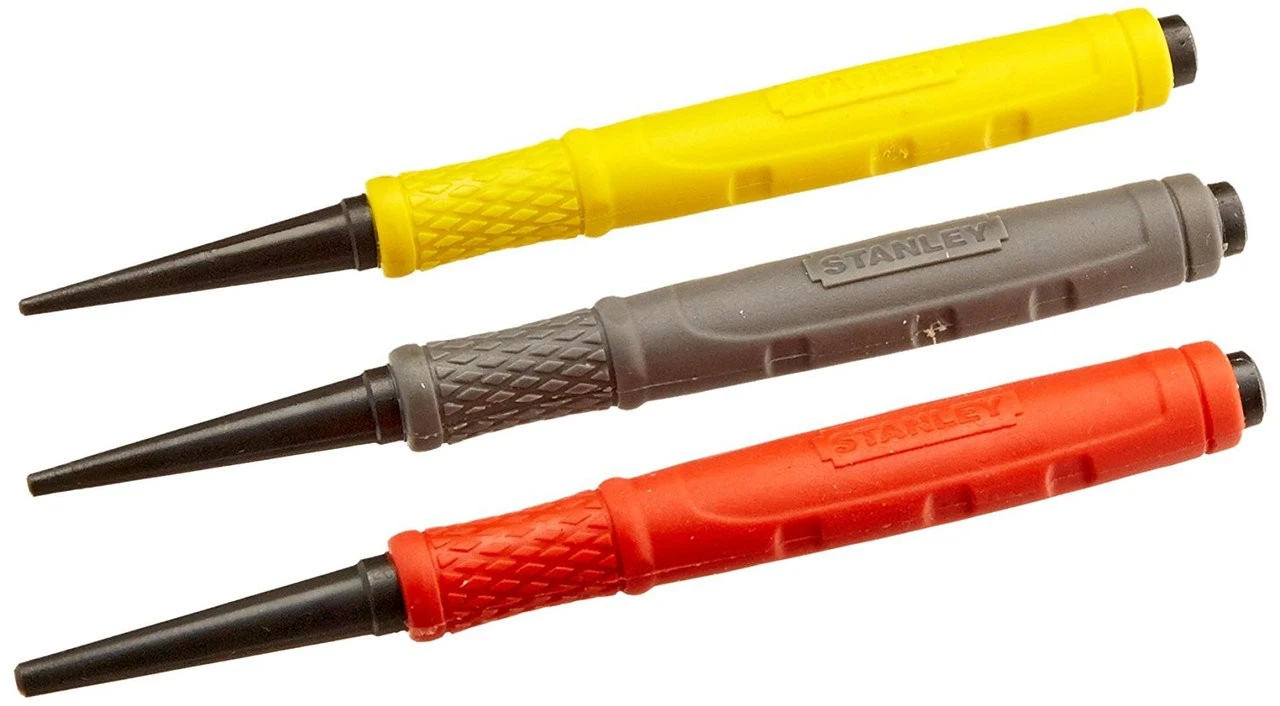 The Stanley Cushion Grip Nail Set is a 3-piece set containing 1/32-inch, 2/32-inch, and 3/32-inch cushion grip nail sets. Cushion grip nail set provides a versatile selection with a unique design Cushioned grip designed for non-slip handling in all weather conditions Fully hardened, precision-milled steel for extra long life Long beveled tip for easier nail head alignment 3-piece set contains 1/32-, 2/32-, and 3/32-inch gripped nails