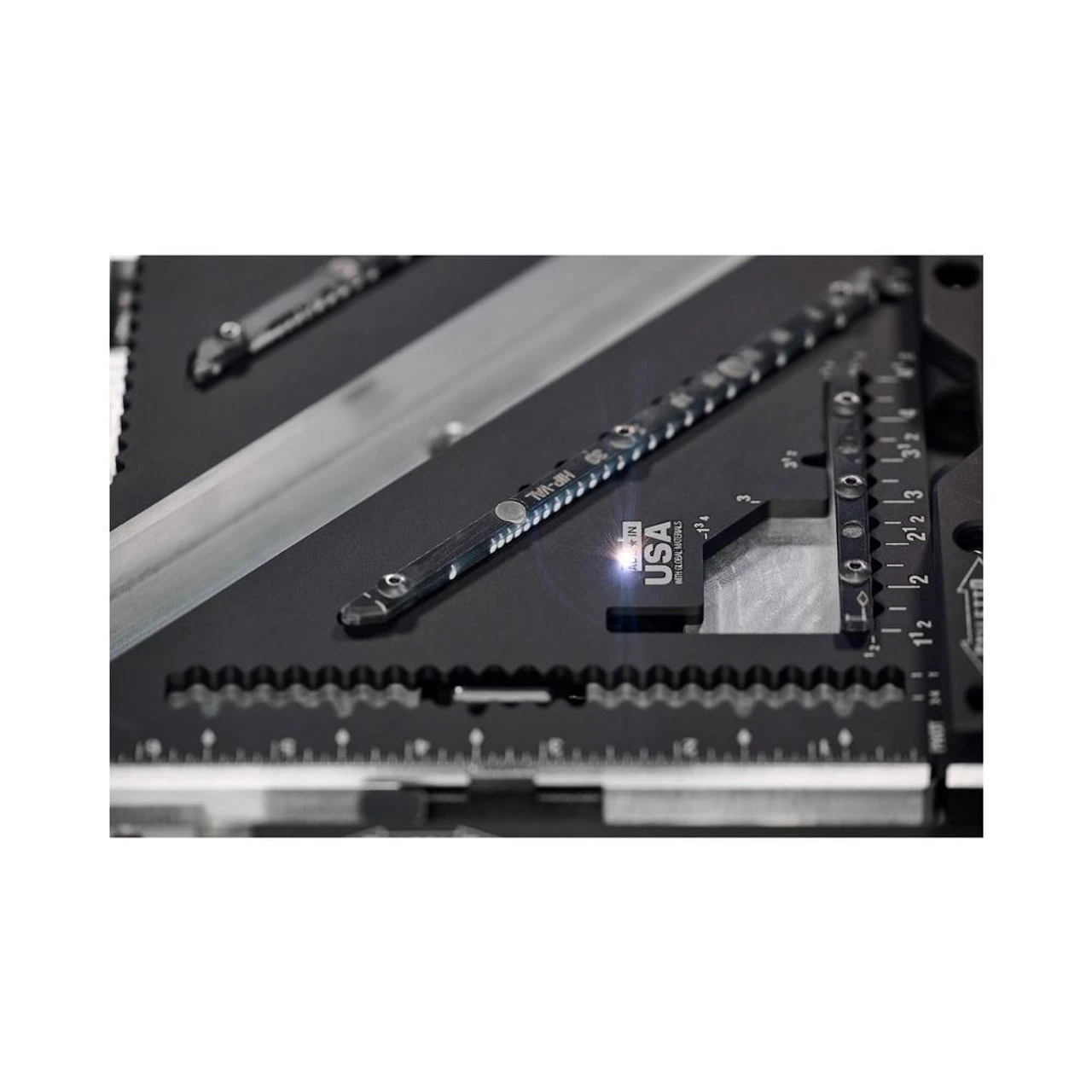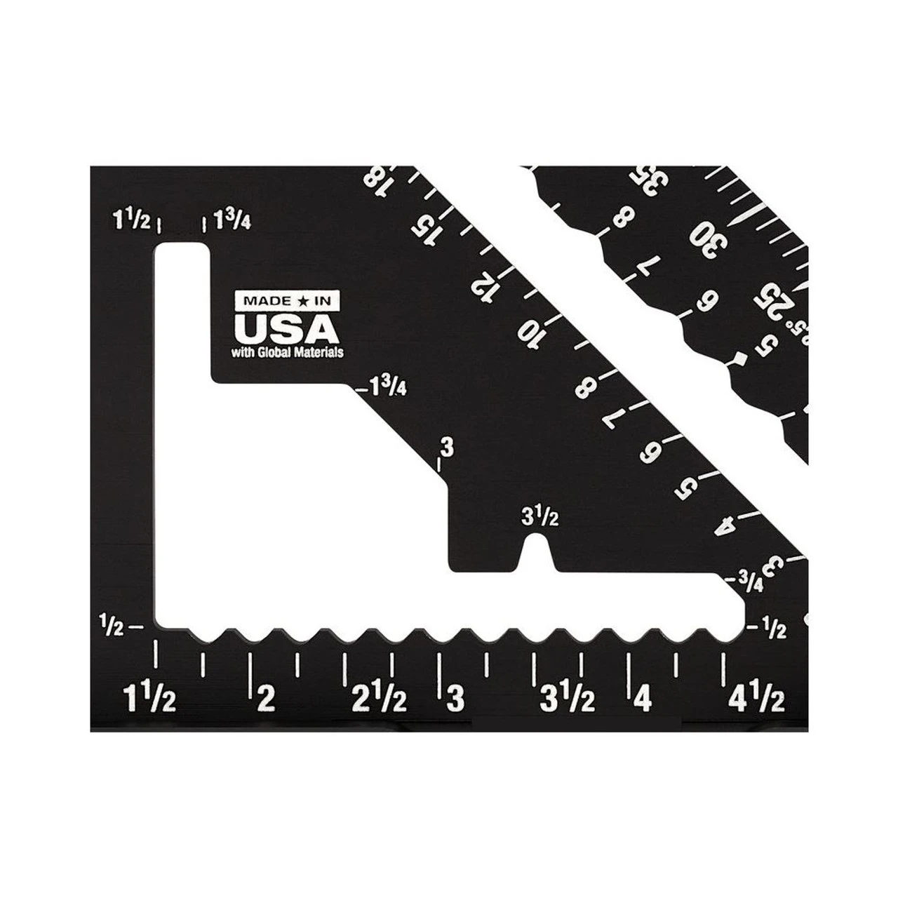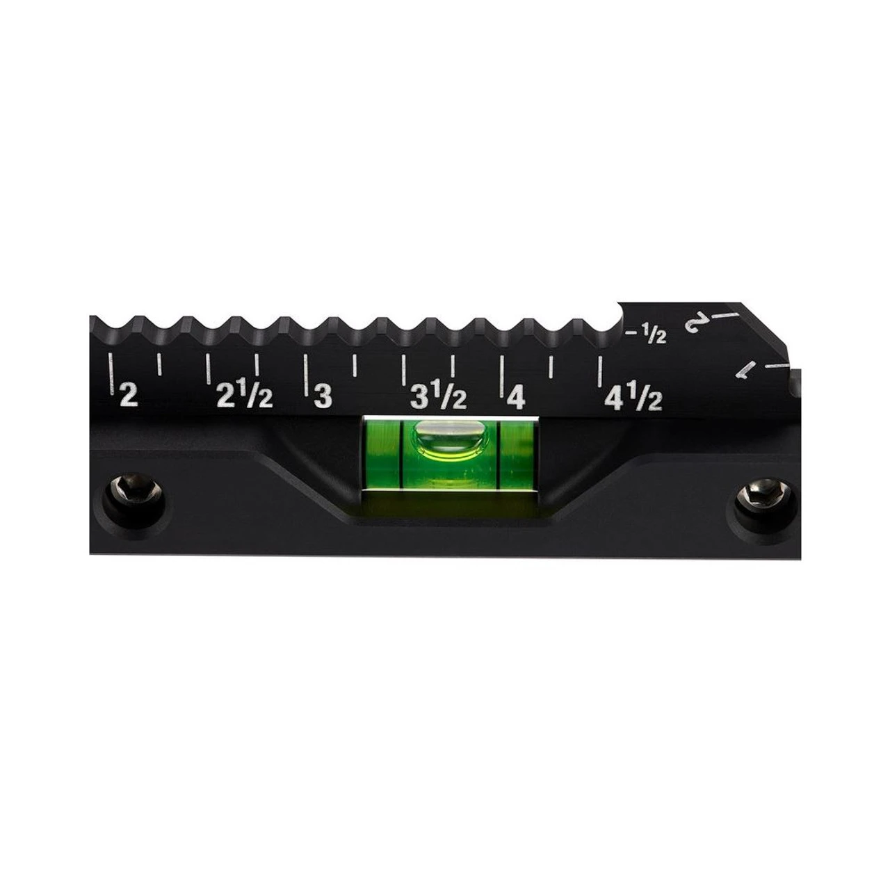 The STILETTO 7in Carpenter Square with Level is designed with more layout notches to help build and level faster. Additional notches aid in laying out 2×6 material, ripping boards, and marking rafter pitches. The BOMBER Cutout allows for repeatable stud measurements, while the bottom heel markings provide marking versatility. The 7in Carpenter Square with Level also features a replaceable 180 degree vial. This square is fully machined, with an anti glare finish and the most durable coating. Features BOMBER Cutout for Faster Layouts – Repeatable Stud Measurements for 1-1/2, 3, 4-1/2, and LVL Most Durable Coating- Anti-Glare, Hard Coat Anodized Finish Extends Life of Laser Etched Markings Fully Machined for Superior Accuracy 180 degree Vial Visibility Bottom Heel Markings Highly Visible Laser Etched Markings 5 1/2in Notch for Laying out 2×6 Material Use BOMBER to Layout Longer Lines when Ripping Boards- 1/2in, 3/4in, 1 3/4in 1-Piece Heel Assembly with Replaceable Vial