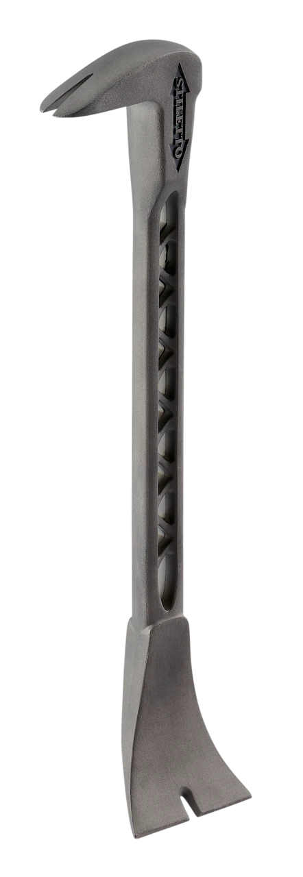The STILETTO 9.5″ Titanium Trimbar is a durable, lightweight trim and finish nail puller. It is recommended for setting windows and doors, moderate prying, and scraping. This trimbar features a 180° side nail puller that allows you to pull 6D-16D nails with ease. 6.2oz Solid Titanium Bar with Lightweight Open Truss Design Japanese Style Trim Puller with Wide Tip for Easy Trim Removal Two “Multi-Fulcrum” Nail Pullers Designed to Increase Leverage