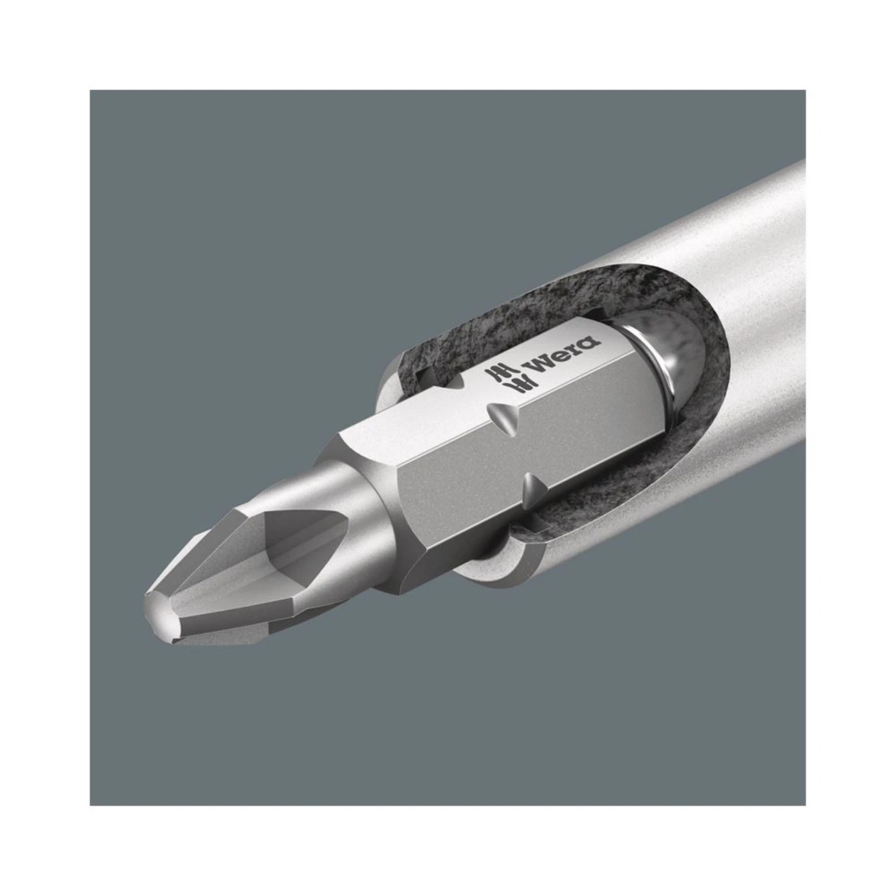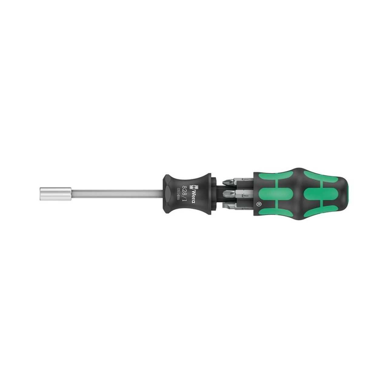 Wera compact tool with multi-component Kraftform handle for high working speeds and particularly ergonomic screwdriving. Bit magazine integrated in the handle, 6 tough bits for universal use. Bit holder with strong permanent magnet for secure seating of the bit. Application: Suitable for bits with 1/4″ external hexagon drive as per DIN ISO 1173-C 6.3 and Wera connection series 1 Design: Hexagonal blade, nicromatt, stainless steel bit holder, with strong permanent magnet; 6 bits, tough, for universal use. Handle:Â Kraftform with anti-roll protection, multi-component, integrated magazine with 6 bits Features Bit-holding handle with bit magazine Bit holder with strong permanent magnet which holds bits firmly Magazine integrated in the handle for bit storage With 6 bits in the magazine: Phillips-head Phillips and slotted; tough