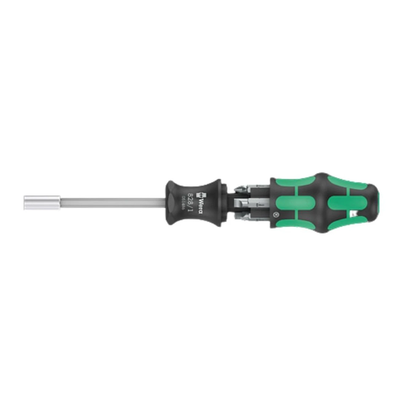 Wera compact tool with multi-component Kraftform handle for high working speeds and particularly ergonomic screwdriving. Bit magazine integrated in the handle, 6 tough bits for universal use. Bit holder with strong permanent magnet for secure seating of the bit. Includes 828/1 Bitholding screwdriver, with strong permanent magnet; magazine for 6 bits in the handle 1x 1/4″ 851/1 Z bits 050720700011x PH 1 x 25 mm 050720720011x PH 2 x 25 mm 800/1 Z bits 050720590011x 1 x 5.5 x 25 mm 050720610011x 1.2 x 6.5 x 25 mm 868/1 Z Square-Plus bits 050664050011x # 1 x 25 mm 050664100011x # 2 x 25 mm
