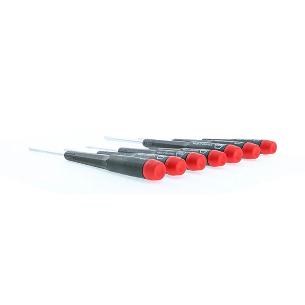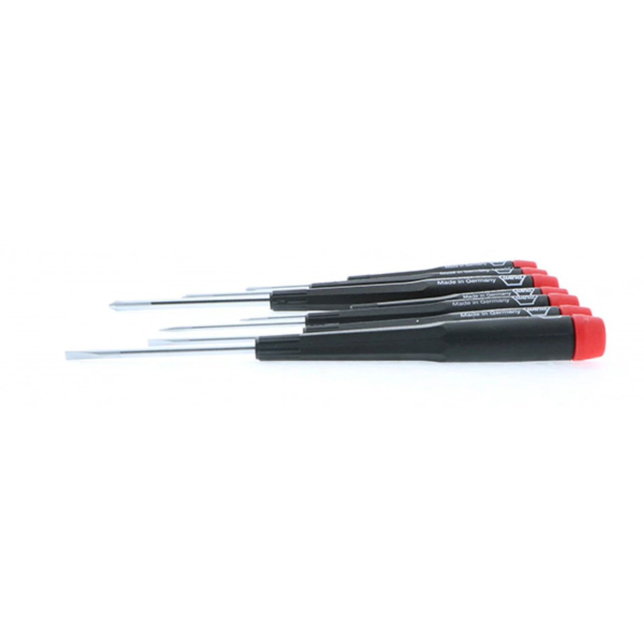 Precision Slotted & Phillips Screwdriver 7 Piece Set Includes: Phillips #00, 0, 1 Slotted 1.5, 2.0, 2.5, 3.0mm Wiha special chrome-vanadium-molybdenum tool steel Through hardened for best wear resistance Corrosion protective Vapor Chromed Finish Exact Fit Precision Machined Tips Precision Handle is made of high Quality cadmium free Plastic Molded on handle for permanent bond to blade The Tapered Shape allows rapid rotation & precise control Handles Proportioned to Blade Size for optimum torque Precision free turning finger tip rotation cap. Professional Quality Made In Germany